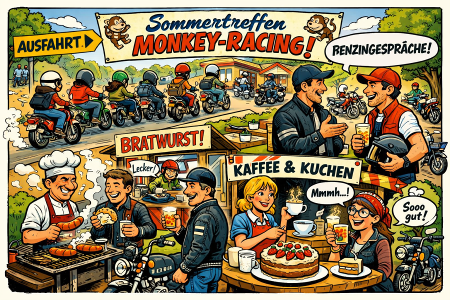Am 8. August 026 ab 9:30 Uhr ist es wieder soweit - wir laden Euch herzlich zum großen Sommertreffen bei Monkey-Racing ein!